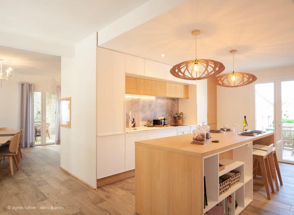 réhabilitation d’une maison années 60, avec cuisine ouverte & cheminée