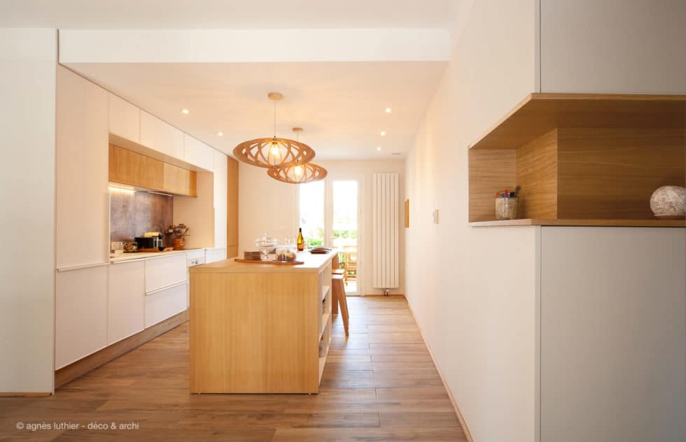 Apport de lumière, décloisonnement pour valoriser les circulations, ajout de nombreuses fonctionnalités cachées pour cette maison années 60, jamais revisitée jusqu’alors.