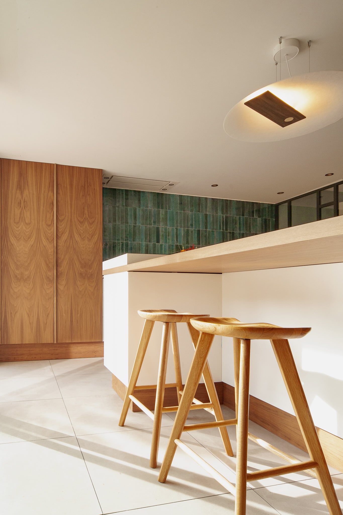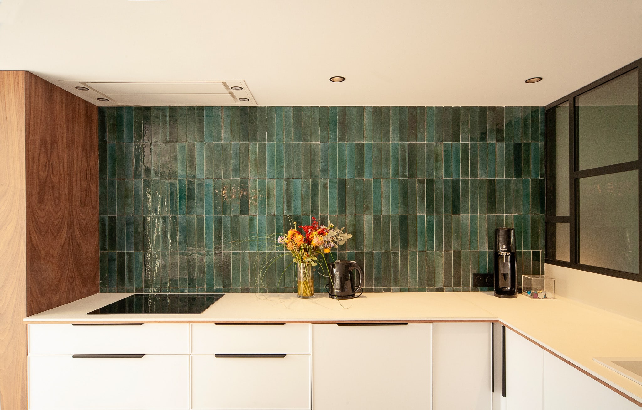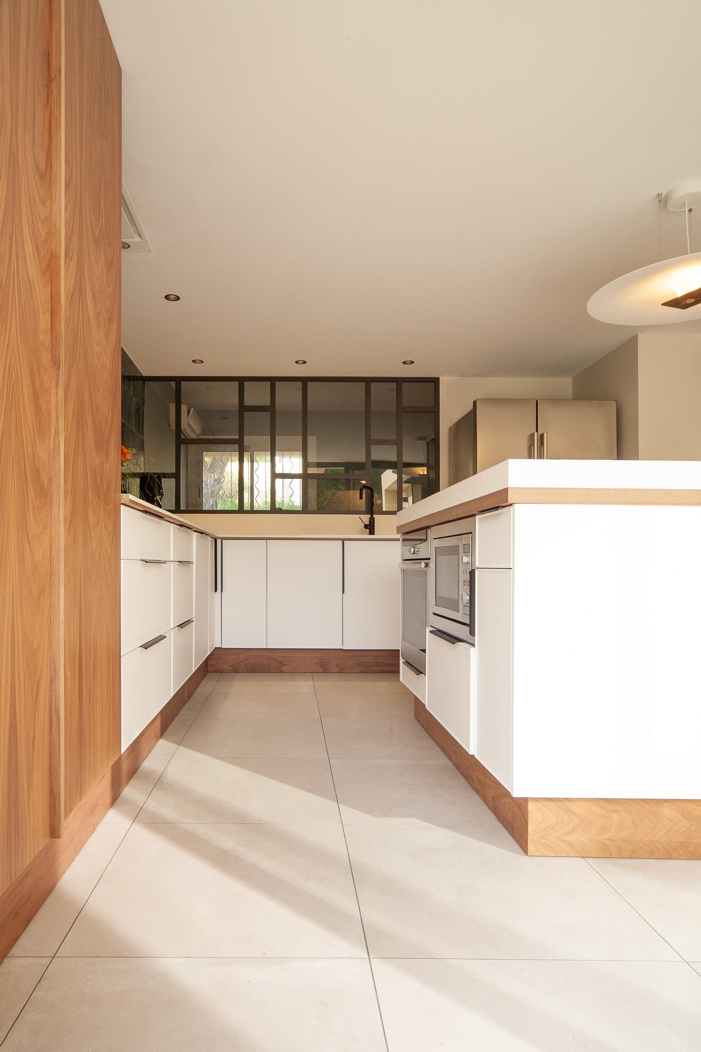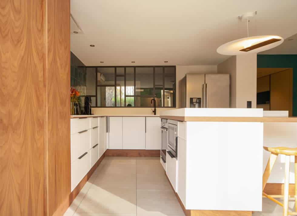 Création d’une cuisine généreuse ouverte sur la pièce à vivre et le bureau adjacent via sa verrière.
